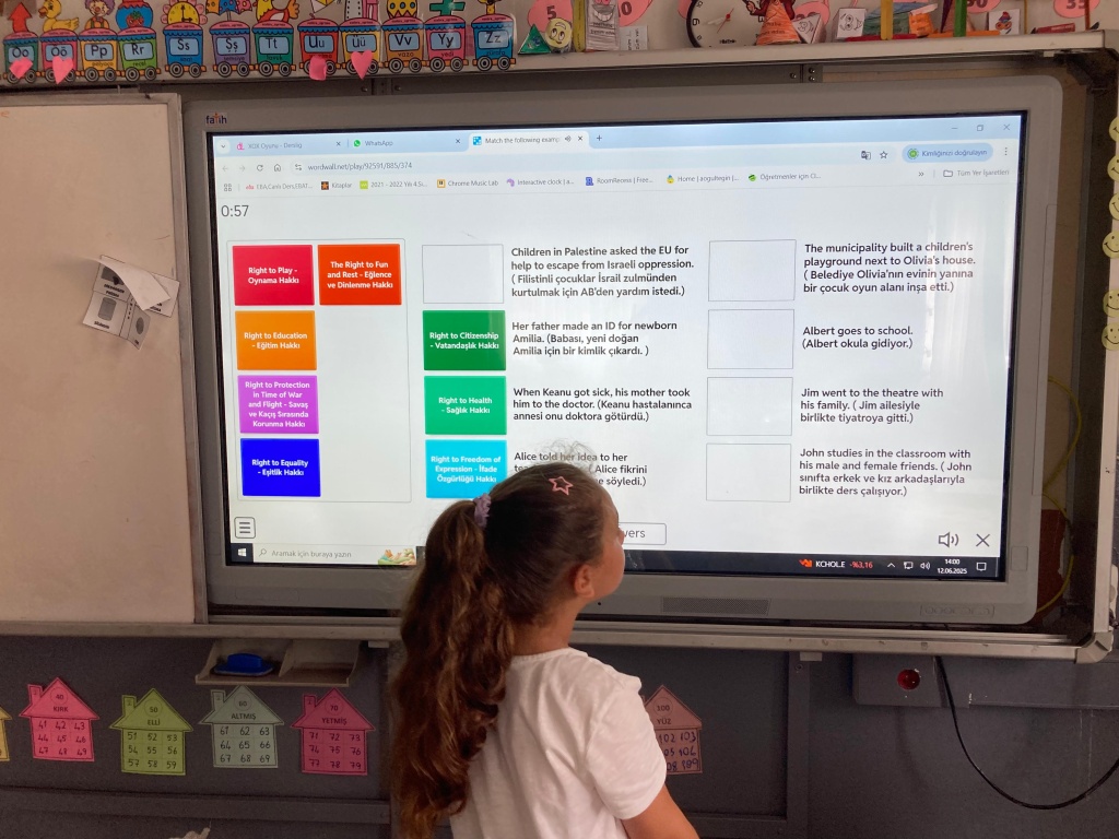 Türkiye Sırbistan Romanya İspanya Yunanistan ve Ürdün'den toplam 13 okulun işbirliği ile Okulumuz 3A sınıfı öğrencileri ile yürütülen Our Project is in Our Hands isimli eTwinning projesinde öğrencilerimiz vatandaşlık konularında bilgiler edindi, haklarını tanıdı ve AB değerlerini özümsedi.